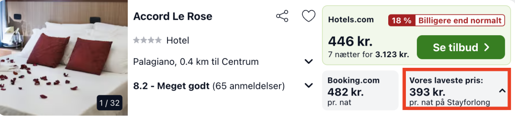 Hvis rejsen er med “Vis rejse” link, så er der tale om en pakkerejse, hvor fly og hotel bestilles på en gang.