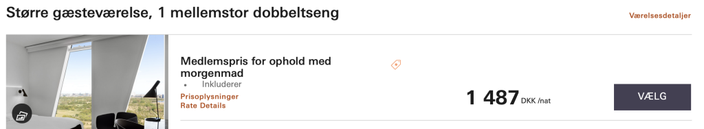 Vi har taget udgangspunkt i et ophold fra den 3. – 4. august, men der er andre datoer til billige priser på Bella Sky.
