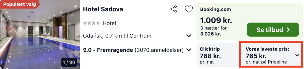 Hvis rejsen er med “Vis rejse” link, så er der tale om en pakkerejse, hvor fly og hotel bestilles på en gang.
