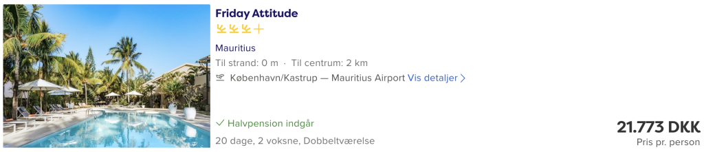 På Apollo har vi fundet et godt tilbud til Mauritius. Der er mange alternative datoer til sammenlignelige priser og rejselængden kan justeres efter behov.