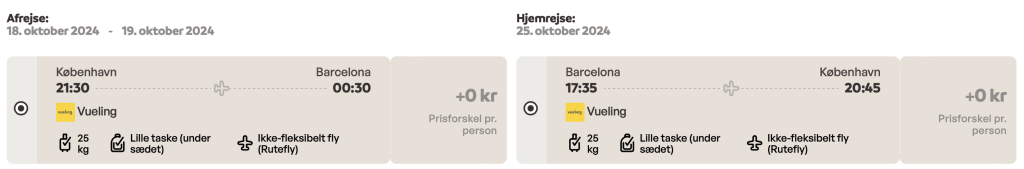 Hvis rejsen er med “Vis rejse” link, så er der tale om en pakkerejse, hvor fly og hotel bestilles på en gang.