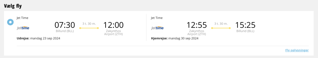 Hvis rejsen er med “Vis rejse” link, så er der tale om en pakkerejse, hvor fly og hotel bestilles på en gang.