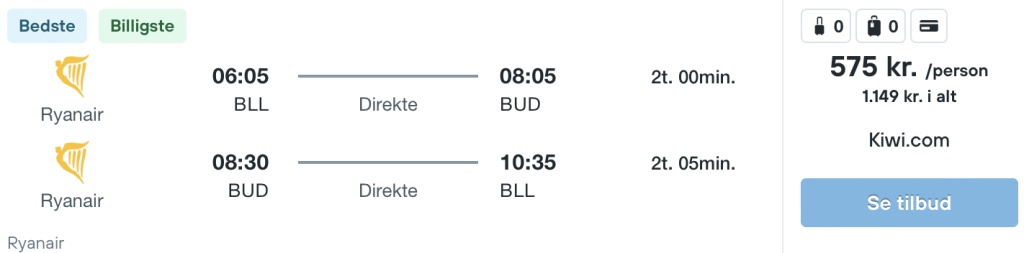 På vores flysøgemaskine har vi fundet billige billetter fra Billund og København til Budapest: