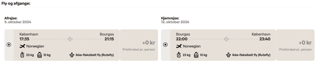 Hvis rejsen er med “Vis rejse” link, så er der tale om en pakkerejse, hvor fly og hotel bestilles på en gang.