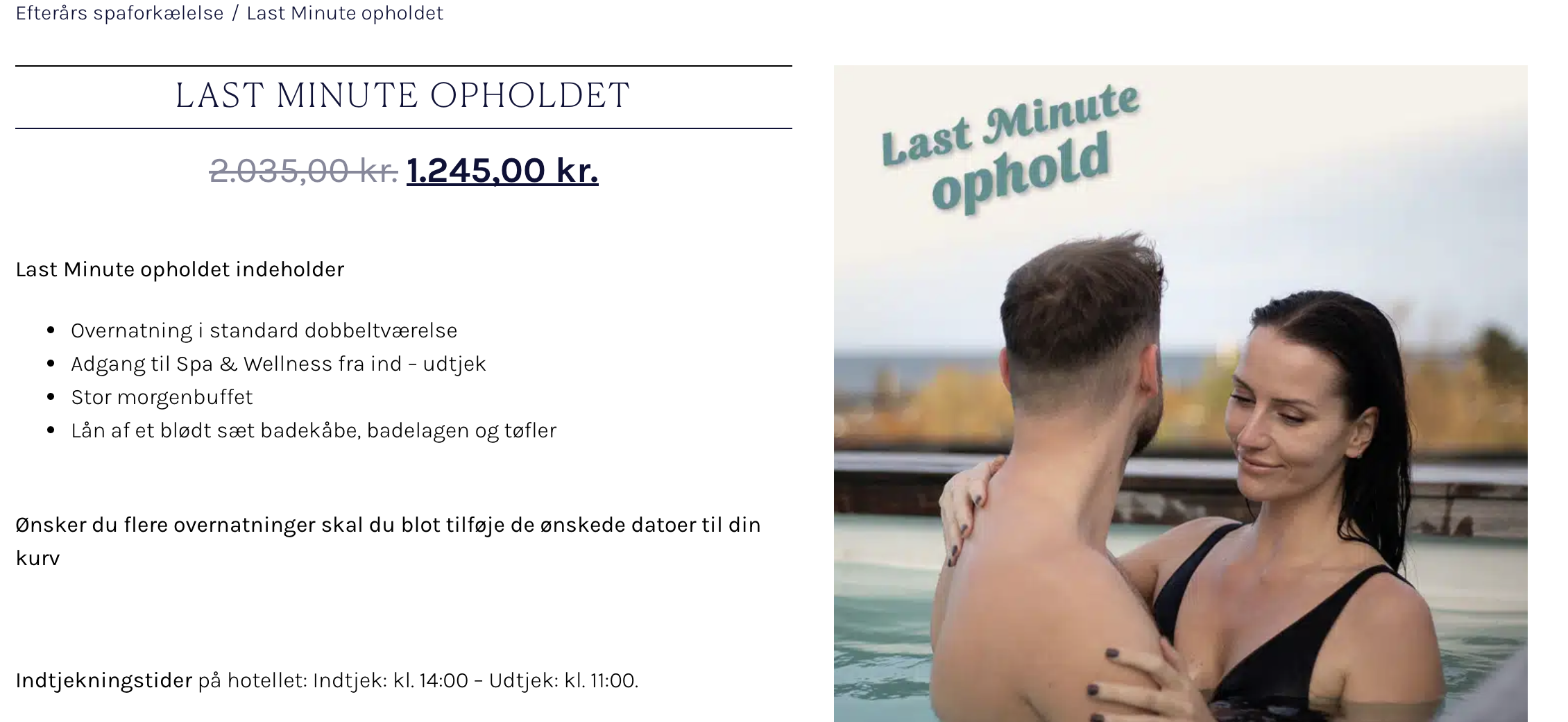 - Spaadgang efter udtjekning: 225kr. pr. pers.