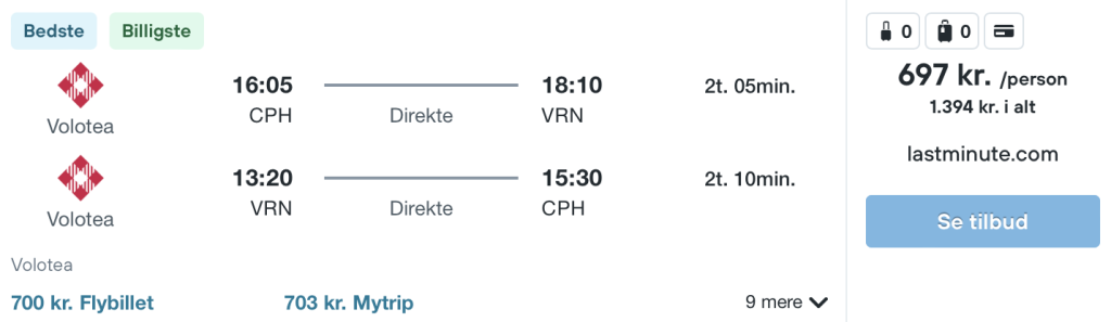 På vores flysøgningsmaskine har vi fundet billige flybilletter fra København til Verona: