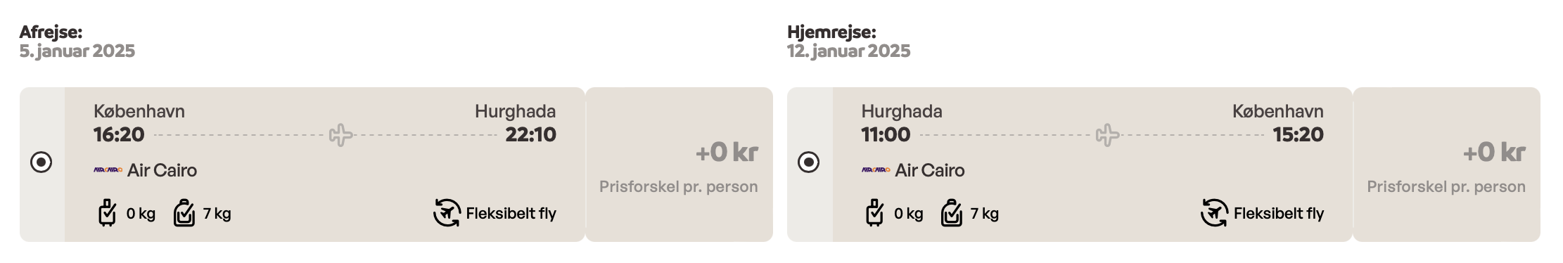 Hvis rejsen er med “Vis rejse” link, så er der tale om en pakkerejse, hvor fly og hotel bestilles på en gang.