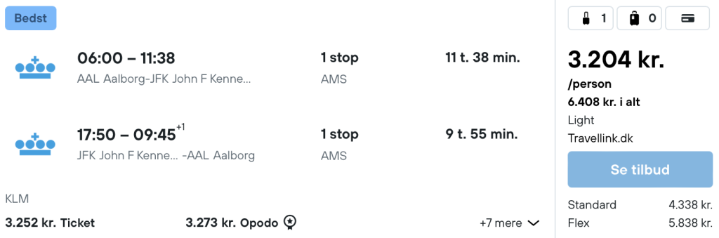 Hvis rejsen er med “Vis rejse” link, så er der tale om en pakkerejse, hvor fly og hotel bestilles på en gang.
