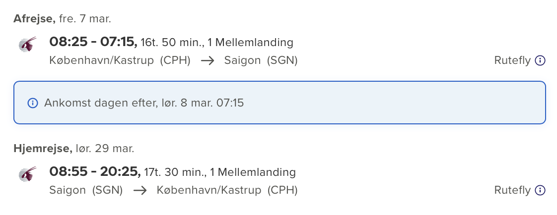 Hvis rejsen er med “Vis rejse” link, så er der tale om en pakkerejse, hvor fly og hotel bestilles på en gang.