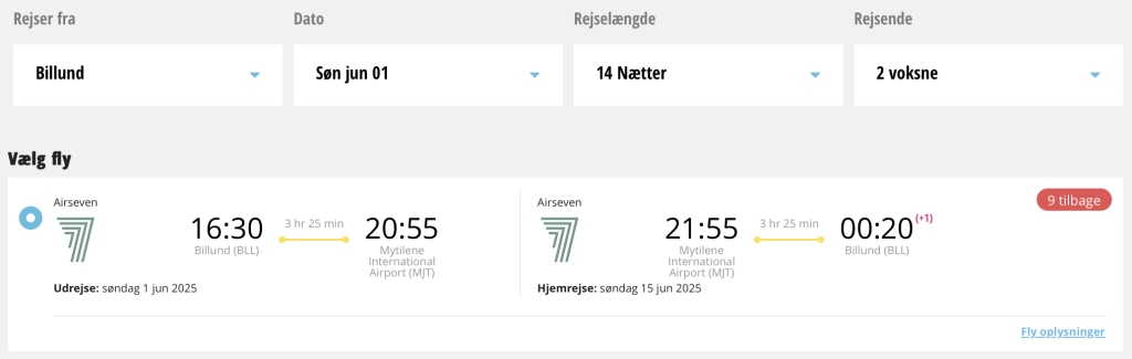 Hvis rejsen er med “Vis rejse” link, så er der tale om en pakkerejse, hvor fly og hotel bestilles på en gang.