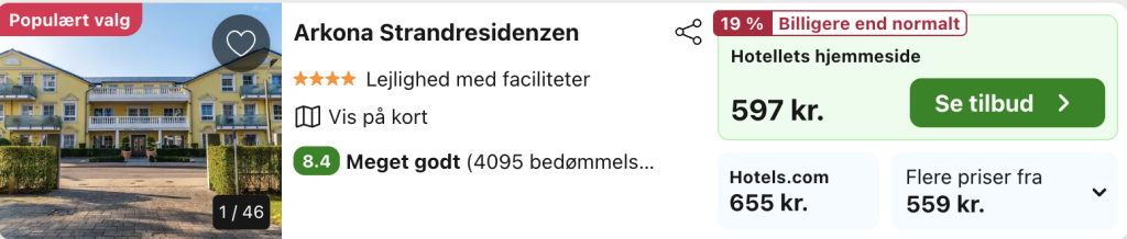Den samlede pris for opholdet er 559,- for 2 personer i et dobbeltværelse hvilket svarer til 280,- per person. Rejs365 er ikke et rejsebureau, men en rejseside, der finder gode tilbud! – Vi modtager kommission, men det påvirker ikke din pris! Læs mere her |