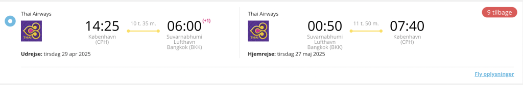 Hvis rejsen er med “Vis rejse” link, så er der tale om en pakkerejse, hvor fly og hotel bestilles på en gang.