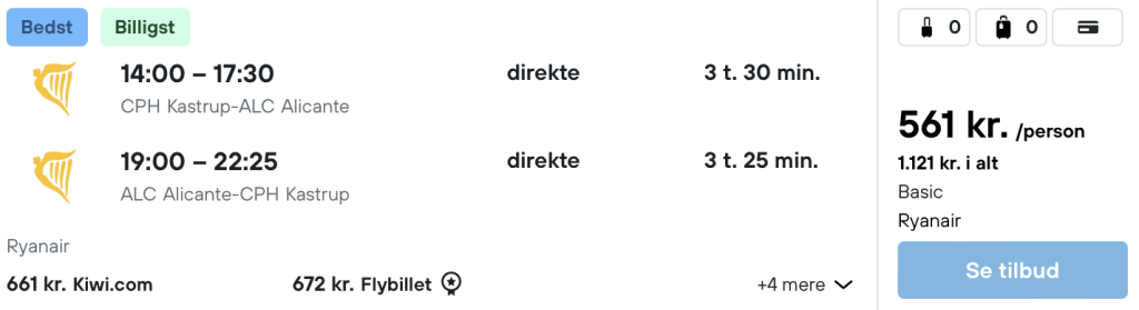 Flyprisen inkluderer kun en lille taske, men bagage kan tilkøbes.