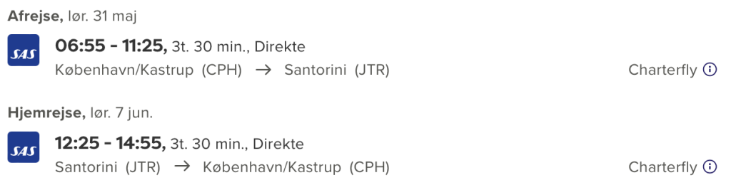 Hvis rejsen er med “Vis rejse” link, så er der tale om en pakkerejse, hvor fly og hotel bestilles på en gang.