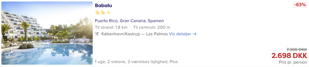Hos Apollo har vi fundet et tilbud fra København, Billund og Aalborg til Gran Canaria: