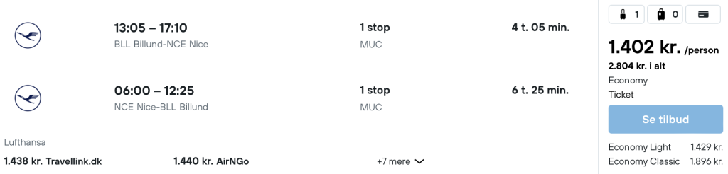 På vores flysøgemaskine har vi fundet billige flybilletter fra København og Billund til Nice.