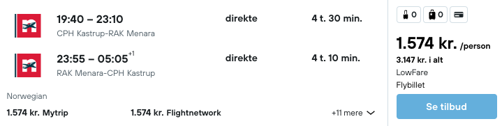 På vores flysøgemaskine har vi fundet billige flybilletter fra København til Marrakech: