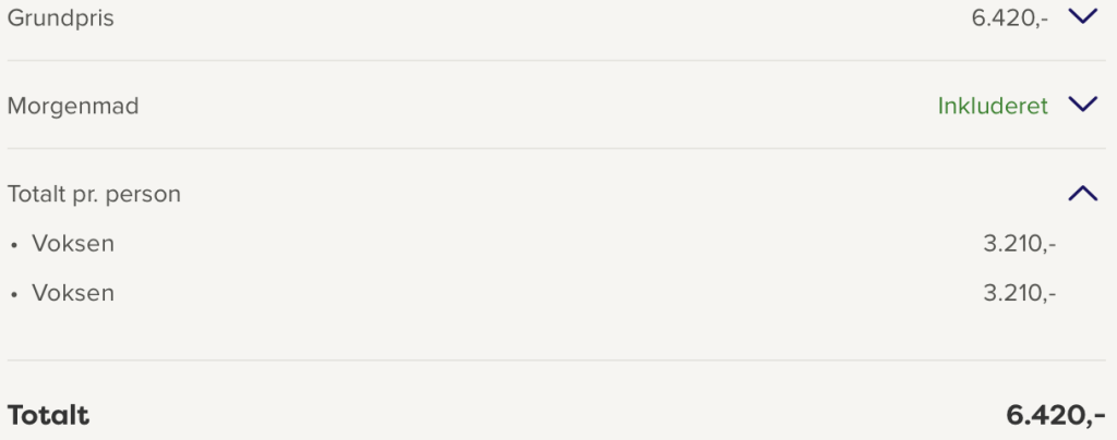 Prisen tager udgangspunkt i 2 personer. Man kan sagtens rejse flere voksne og eller med børn og derved typisk opnå en billigere pris pr. person.