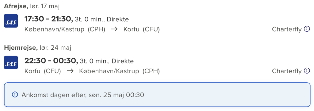 Hvis rejsen er med “Vis rejse” link, så er der tale om en pakkerejse, hvor fly og hotel bestilles på en gang.