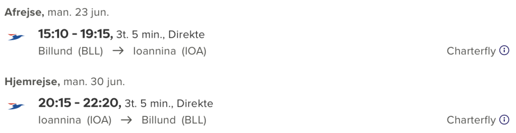 Hvis rejsen er med “Vis rejse” link, så er der tale om en pakkerejse, hvor fly og hotel bestilles på en gang.