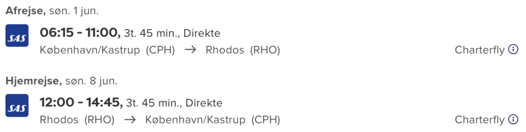 Hvis rejsen er med “Vis rejse” link, så er der tale om en pakkerejse, hvor fly og hotel bestilles på en gang.