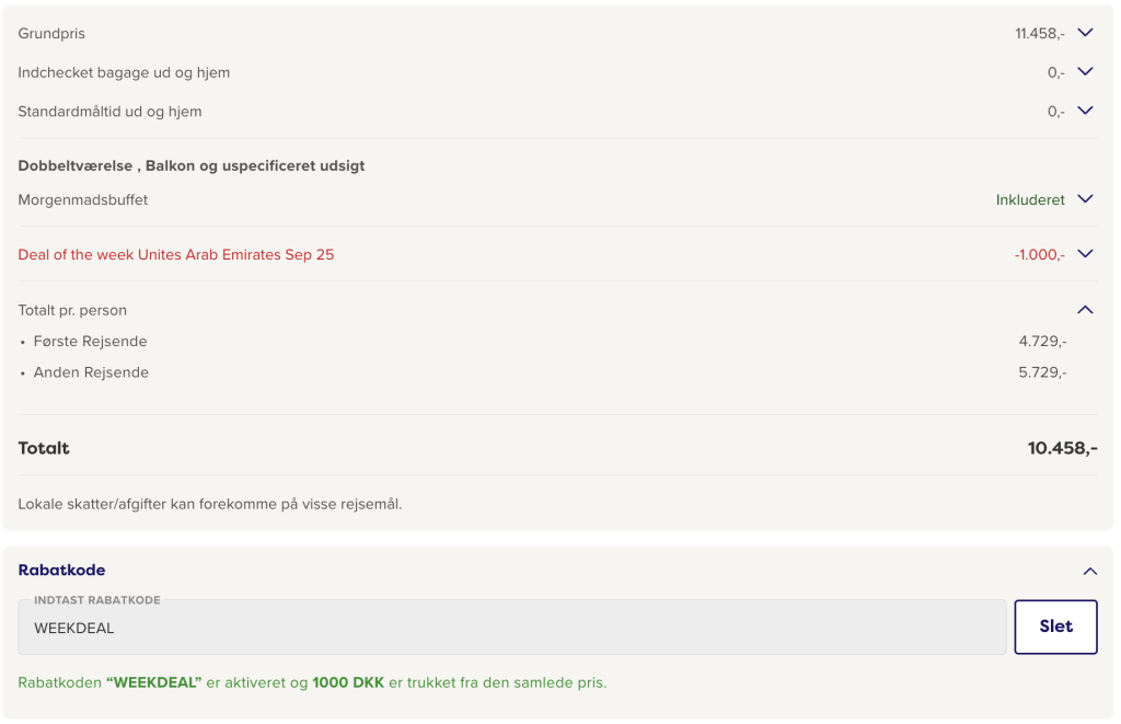 Med rabatkoden WEEKDEAL får du 1.000,- i rabat per booking, når du booker en ny rejse til De Forenede Arabiske Emirater hos Apollo. Gyldig for afrejseperioden 1/12 2025 – 31/7 2026.