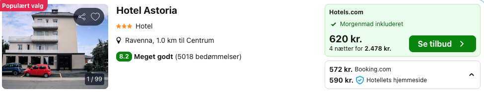 5 dage i Ravenna for kun 1.642,- per person inkl. fly og hotel med god beliggenhed!