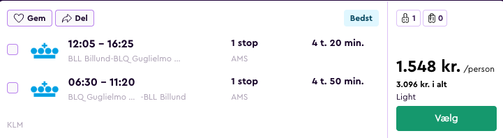 Hvis rejsen er med “Vis rejse” link, så er der tale om en pakkerejse, hvor fly og hotel bestilles på en gang.
