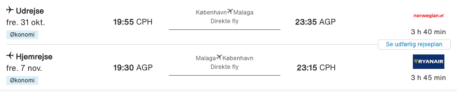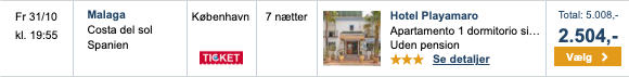 Hvis rejsen er med “Vis rejse” link, så er der tale om en pakkerejse, hvor fly og hotel bestilles på en gang.