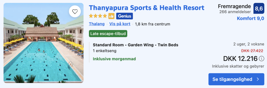 2 uger på Sydøstasiens største sportsresort i Thailand for kun 9.176,- per person inkl. fly, bagage, flot resort med morgenmad og fantastiske faciliteter!