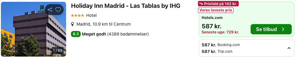 Bemærk: Husk at lade søgningen blive helt færdig. Der kan være mindre prisforskelle på mobil og pc. Undersøg med fordel, hvor det er billigst inden bestilling. Rejs365 er ikke et rejsebureau, men en rejseside, der finder gode tilbud! – Vi modtager kommission, men det påvirker ikke din pris! Læs mere her |