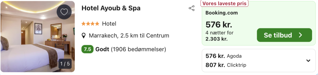 Vi har taget udgangspunkt i det 4-stjernet Hotel Ayoub & Spa, der ligger i Marrakech.