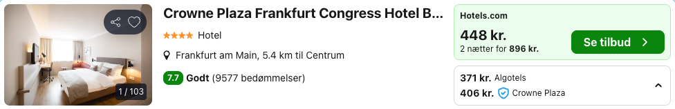 3 dages forlænget weekend i Frankfurt for kun 406,- per person inkl. 4-stjernet hotel!