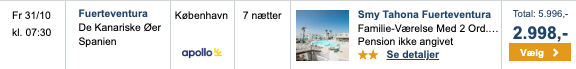 Hos Apollo har vi fundet et godt tilbud fra København til Fuerteventura.