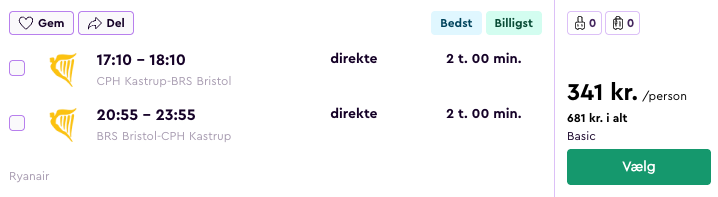 Flyprisen inkluderer kun en lille taske, men bagage kan tilkøbes.