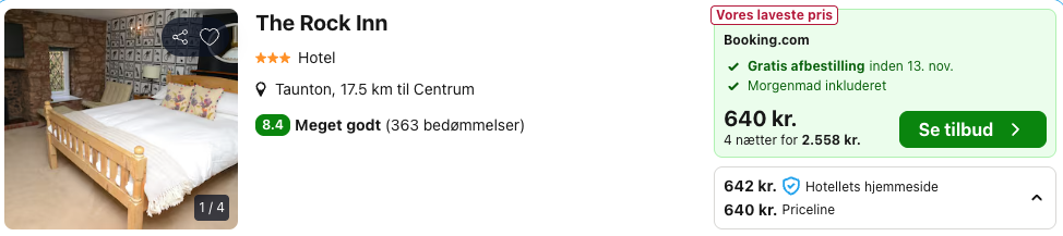 Bemærk: Husk at lade søgningen blive helt færdig. Der kan være mindre prisforskelle på mobil og pc. Undersøg med fordel, hvor det er billigst inden bestilling Rejs365 er ikke et rejsebureau, men en rejseside, der finder gode tilbud! – Vi modtager kommission, men det påvirker ikke din pris! Læs mere her |