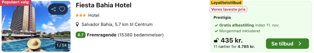 F.eks. 12 dage i Salvador for kun 6.169,- inkl. fly og 4-stjernet hotel med pool og morgenmad!