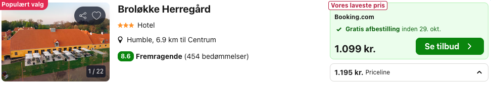 Der er andre datoer til gode priser på Broløkke Herregård.