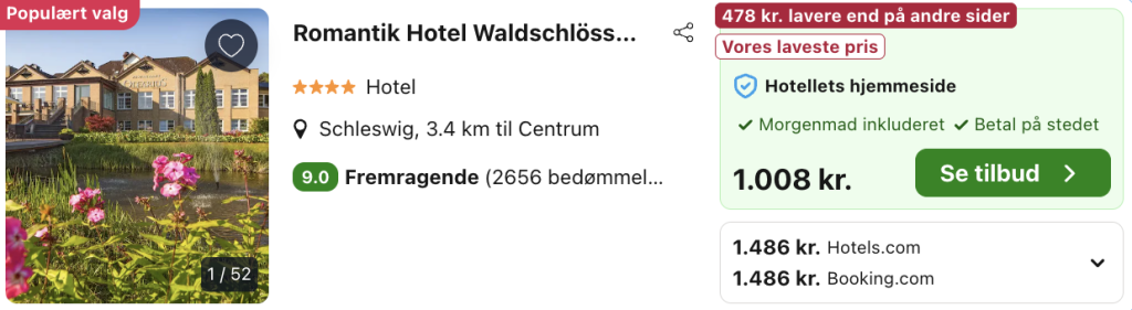 ![]() Bemærk: Den samlede pris for opholdet er 1.008,- for 2 personer i et dobbeltværelse, hvilket svarer til 504,- per person. Rejs365 er ikke et rejsebureau, men en rejseside, der finder gode tilbud! – Vi modtager kommission, men det påvirker ikke din pris! Læs mere her |