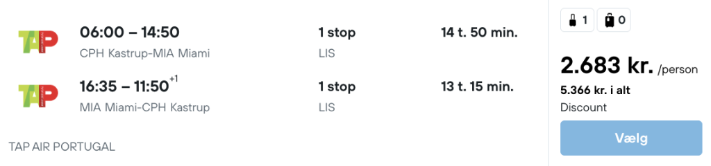 På vores fly søgemaskine har vi fundet billige flybilletter fra København og Billund til Miami: