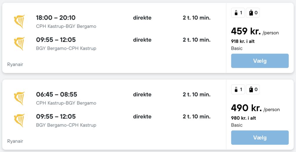 Flyprisen inkluderer kun en lille taske, men bagage kan tilkøbes.