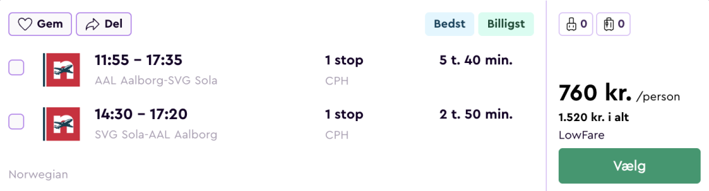 På vores flysøgningsmaskine har vi fundet billige flybilletter fra København og Aalborg til Stavanger: