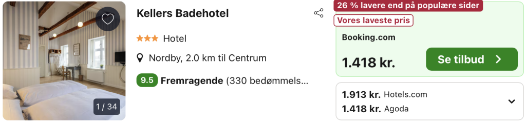Vi har taget udgangspunkt i et ophold fra den 31. oktober – 1. november på Kellers Badehotel på Fanø, der er en idyllisk perle, der byder på en unik kombination af klassisk badehotelscharme og moderne komfort. Beliggende ved de smukke sandstrande på Fanø, tilbyder dette hotel en perfekt flugt fra hverdagens hektik, hvor gæsterne kan nyde roen, den friske havluft og de naturskønne omgivelser. Det er et ideelt valg for dem, der søger en afslappende ferie ved Vesterhavet, kombineret med et væld af muligheder for at udforske øens naturskønne landskaber.