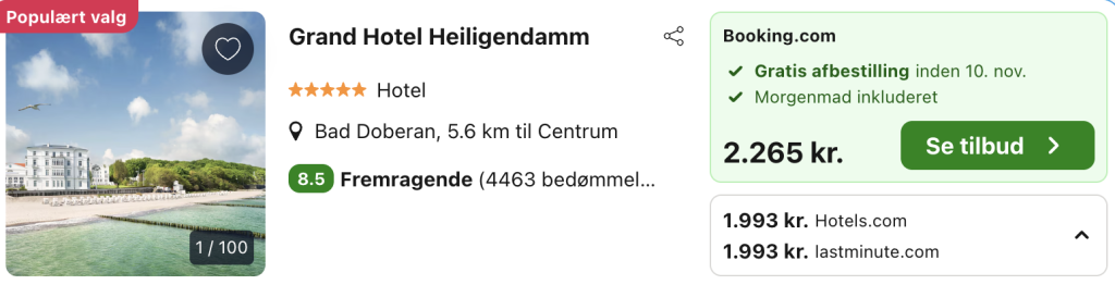 ![]() Bemærk: Den samlede pris for opholdet er 1.993,- for 2 personer i et dobbeltværelse, hvilket svarer til 997,- per person. Rejs365 er ikke et rejsebureau, men en rejseside, der finder gode tilbud! – Vi modtager kommission, men det påvirker ikke din pris! Læs mere her |