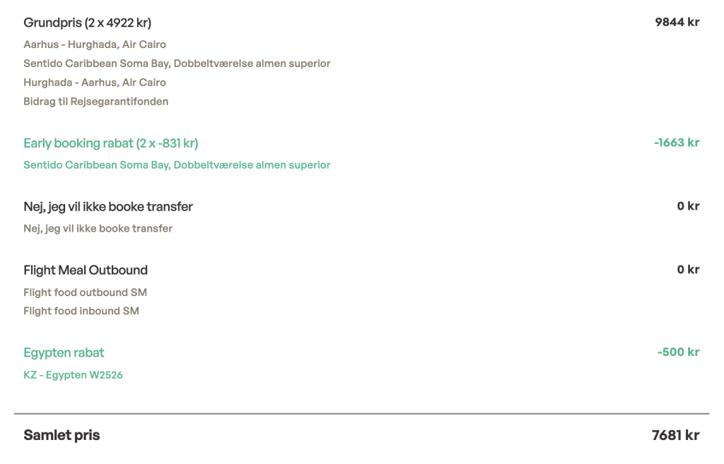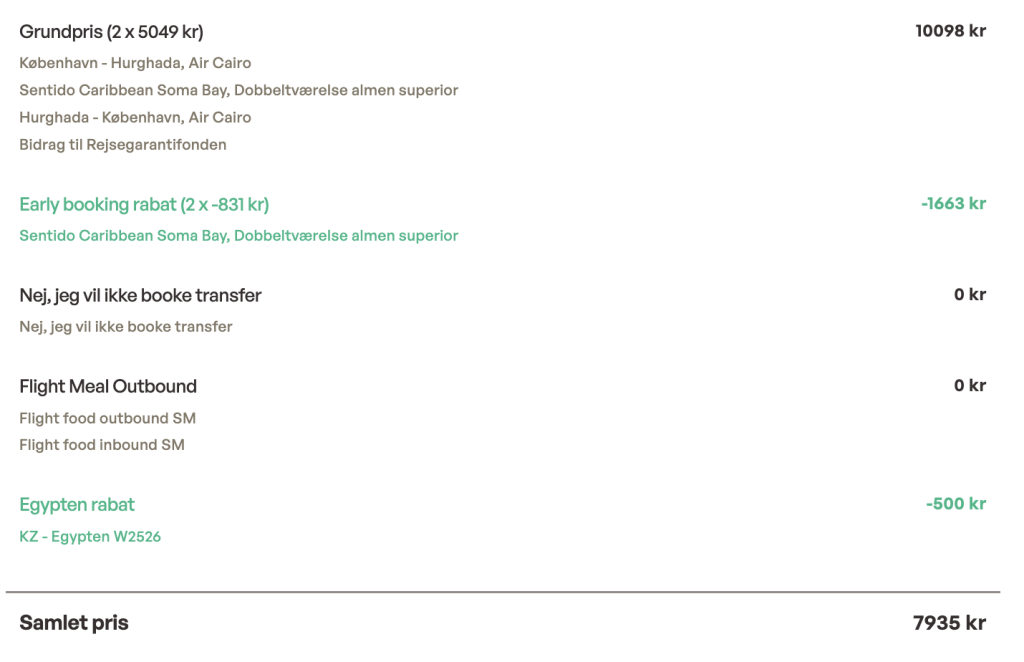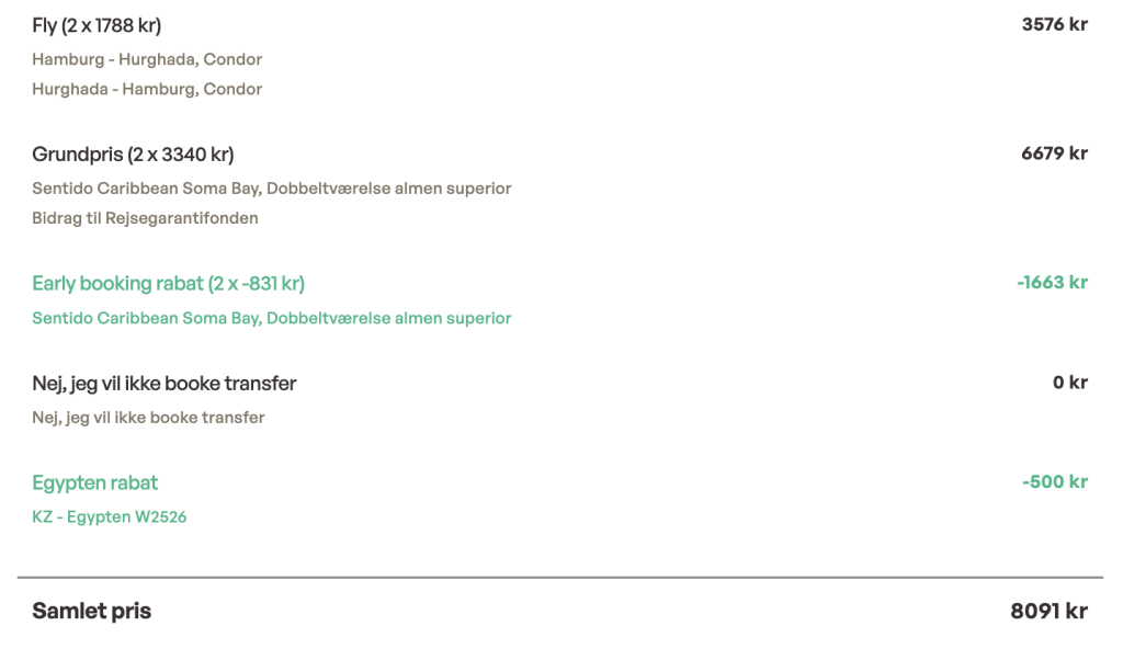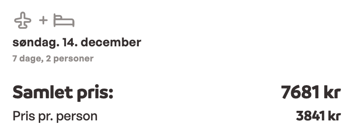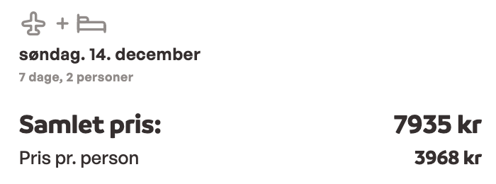 Bemærk: Sunweb viser den samlede pris for 2 personer.
