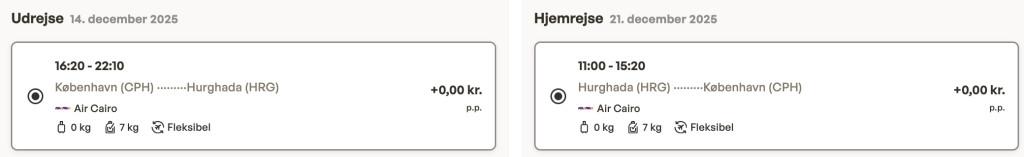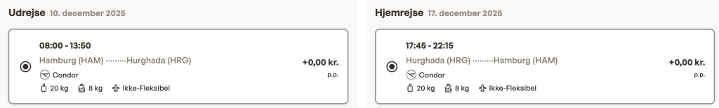 Hvis rejsen er med “Vis rejse” link, så er der tale om en pakkerejse, hvor fly og hotel bestilles på en gang.
