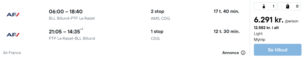 På vores flysøgemaskine har vi fundet billige fly fra København, og Billund til Guadeloupe i november og december måned. Der er mange alternative datoer til samme priser.