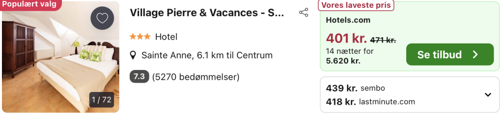 Hvis rejsen er med “Vis rejse” link, så er der tale om en pakkerejse, hvor fly og hotel bestilles på en gang.