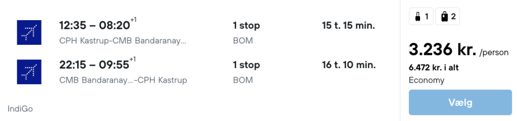 På vores flysøgemaskine har vi fundet billige billetter fra København til Sri Lanka.