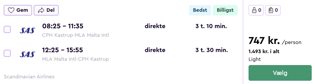 På vores flysøgemaskine har vi fundet billige flybilletter fra København til Malta: